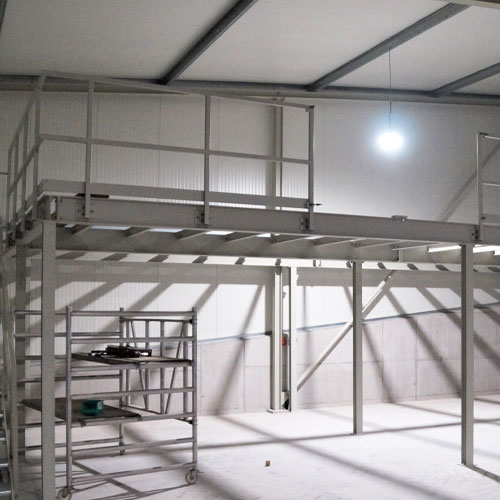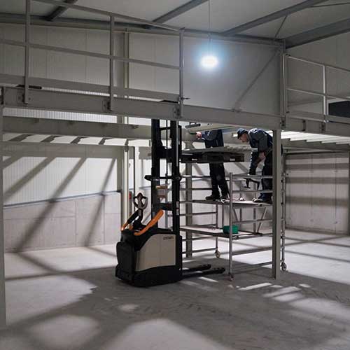- BESONDERHEIT: Einbindung der Bühnenkonstruktion in bestehender Stahlhalle und zusätzlicher Treppen-Anbindung