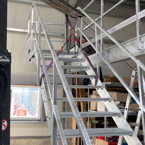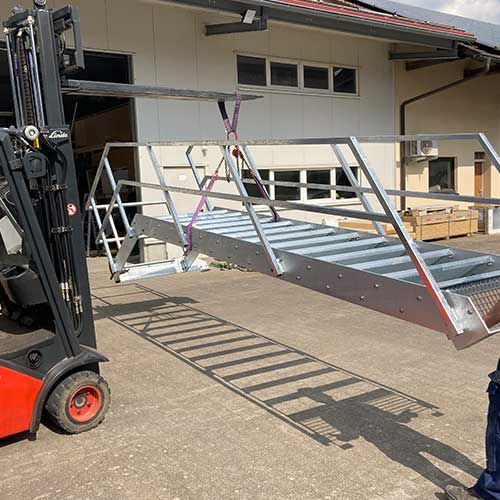 - BESONDERHEIT: Erweiterung der bestehenden Stahlbühne mit zusätzlichem Übergangssteg und 2 weiteren Zugangstreppen