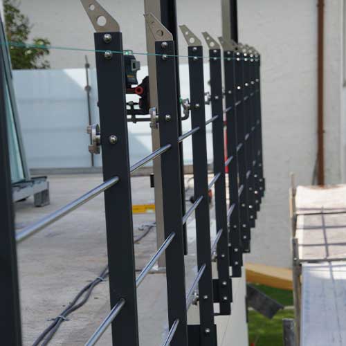 - BESONDERHEIT: Integrierte vertikale sowie horizontale Beschattung | Stromanschluss in Form von Steckdosen | in den Stützen integrierte Kabelführung für Beschattung, Stromversorgung und Beleuchtung in verdeckter Ausführung