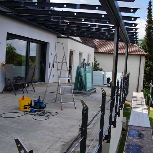 - DACHEINDECKUNG: Verbundsicherheitsglas klar mit Überstand