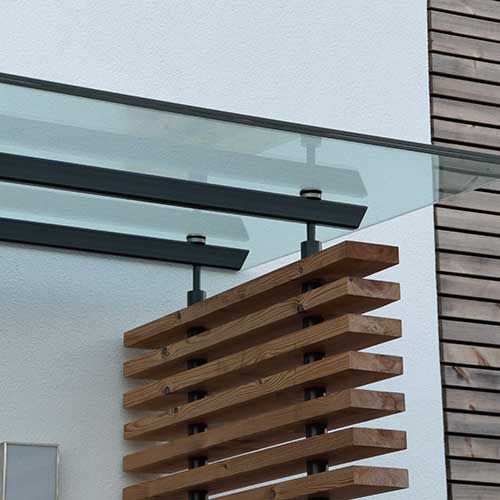 - BESONDERHEIT: Stützkonstruktion für Glaseindeckung und Holzelement | Füllung in verdeckter Befestigungsvariante ohne sichtbare Verschraubungen