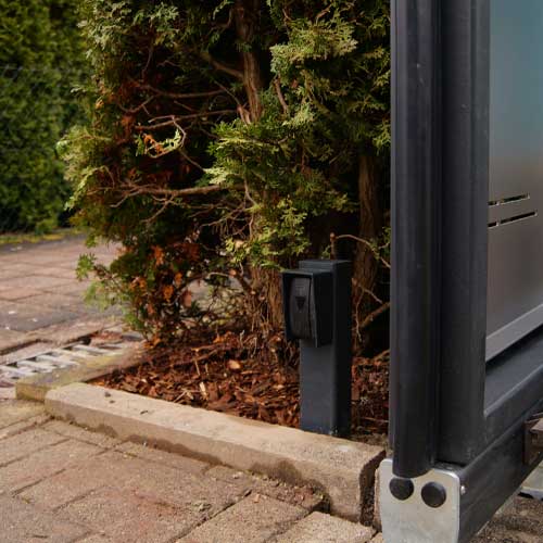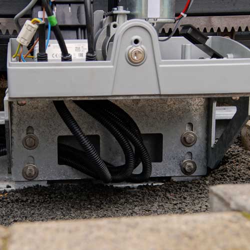 - BESONDERHEIT: Drehtoranlage mit elektrischem Antrieb | vorhandene Torantriebe der Garagentore wurden in die neue Steuerung integriert, wodurch eine Bedienung aller Tore durch einen Handsender ermöglicht wurde.